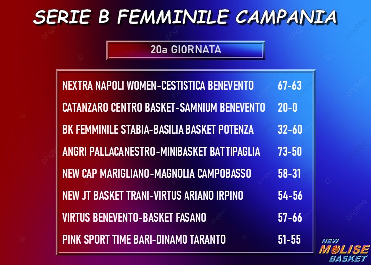 Come dicevamo in sede di presentazione di questa partita, nulla di grave per le “magnoline”, la cui classifica non viene modificata grazie alle contemporanee sconfitte delle dirette concorrenti: perdono, infatti, sia Stabia che Battipaglia rispettivamente contro Potenza ed Angri. Nelle parti alte della classifica, oltre a Marigliano vince anche l’altra capolista Catanzaro, a tavolino contro il Samnium Benevento a causa della rinuncia alla gara da parte della formazione beneventana. Naturalmente il 20-0 sarà ufficiale solo quando il giudice sportivo esaminerà il referto e comminerà la sanzione alle sannite, ma tale sanzione è scontata per cui la consideriamo come già acquisita ed aggiorniamo la classifica di conseguenza. Vince Fasano sul difficile campo della Virtus Benevento e vince anche Napoli, non senza faticare, contro la Cestistica Benevento. Successi, infine, anche per Taranto a Bari