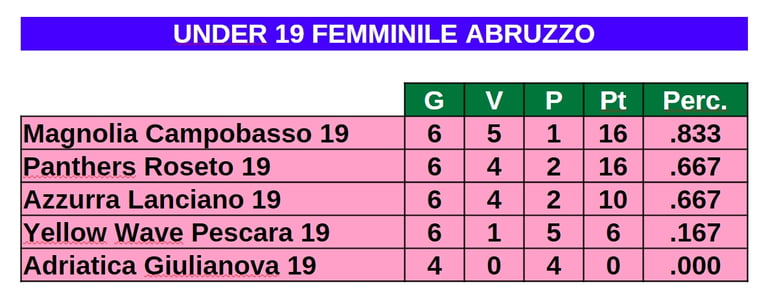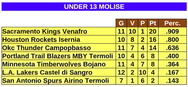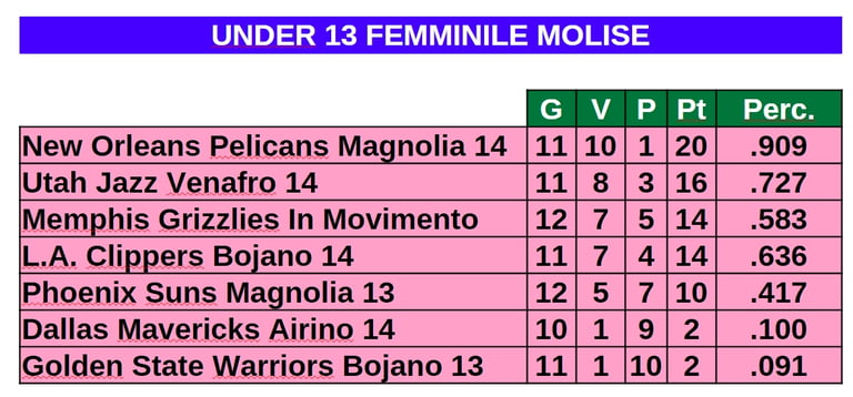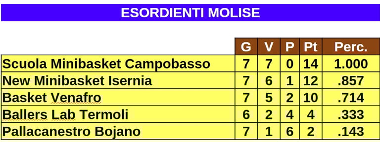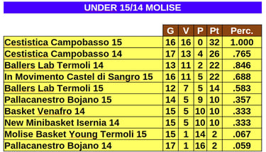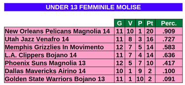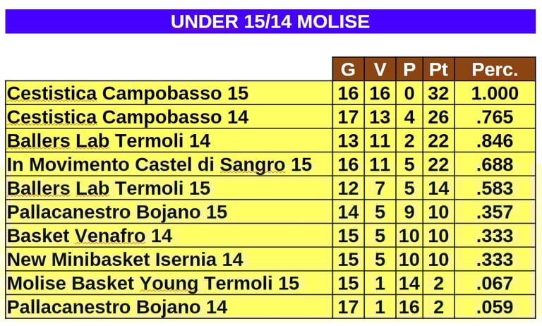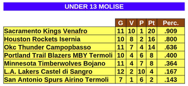 Quarto appuntamento mensile con le classifiche di tutti i tornei giovanili ai quali partecipano squadre molisane