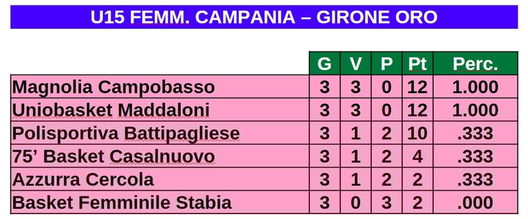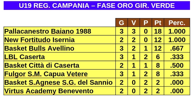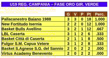 Le prime quattro di ogni girone si sono qualificate alla "fase oro" conservando i punti conquistati negli scontri diretti. La New Fortitudo Isernia è inserita nel girone verde di tale fase insieme alle altre tre qualificate del suo girone e alle quattro provenienti dal girone A. Nell'immagine qui di seguito vedete la classifica provvisoria, ad oggi, del girone verde.