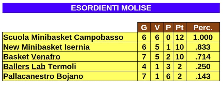 Quarto appuntamento mensile con le classifiche di tutti i tornei giovanili ai quali partecipano squadre molisane