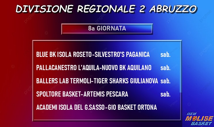 In attesa che vengano completati tutti i recuperi e che quindi la classifica possa assumere una fisionomia che rispecchi appieno i valori che le squadre mostrano sul campo, la gara più interessanete della giornata è quella che vede di fronte due delle quattro battistrada, precisamente Blue Basket Isola Roseto-Silvestro’s Paganica. Sulla carta più agevole, invece, il match che attende la quarta capolista, lo Spoltore, che riceve la visita dell’Artemis Pescara. Si presenta interessante, poi, il derby fra le due aquilane, con il Nuovo Basket che per il calendario gioca questa stracittadina in trasferta. L’uiltima gara in programma, anche cronologicamente visto che è l’unica che si gioca di domenica, è quella fra Academy Isola del Gran Sasso ed Ortona.