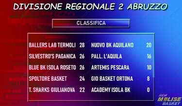 Divisione Regionale 2 Abruzzo 2025-26: Al via la fase ad orologio, per la Baller Lab un impegno non difficile