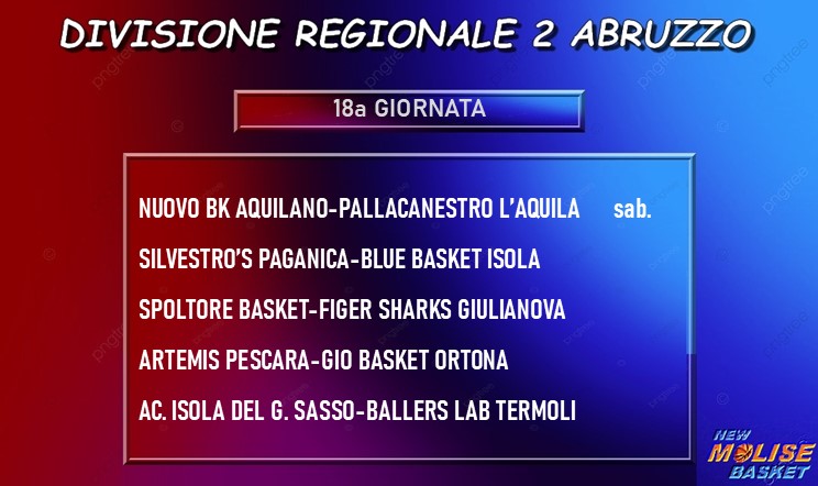 Soprattutto quello di via Romana nella frazione Paganica dell’Aquila, dove la formazione di casa ospita la Blue Basket Isola, partita che in caso di successo del team viaggiante (oltre che di vittoria termolese) ridarebbe ai molisani quattro punti di vantaggio sulle più immediate inseguitrici. Interessante anche Spoltore-Giulianova, le altre due gare in programma sono il derby fra Nuovo Basket Aquilano e Pallacanestro L’Aquila e il match fra Artemis Pescara e Gio Basket Ortona.