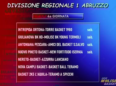 Divisione Regionale 1 Abruzzo 2025-26: Molisane entrambe al sabato con impegni non facili