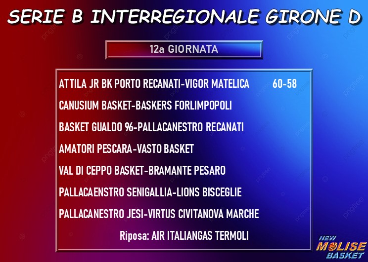 ARBITRI: Di Carlo (Pescara) e Ricci (Montesilvano, PE).