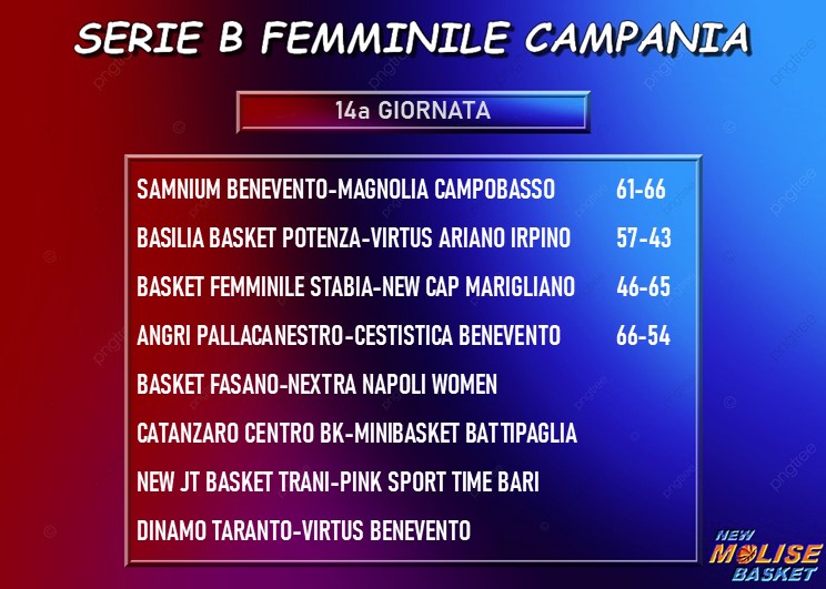 BENEVENTO: Vaccaro 8, Nardone, Clementi 28, Rubortone ne, Russo ne, Presta 7, Battistini 11. Uggen ne, D’Avanzo 7, Iovino, Abbatiello. All. Gagliardi.