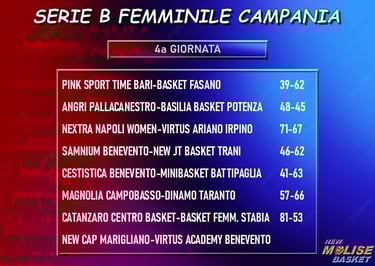 NOTE: infortunio (problema al ginocchio) nel terzo quarto per Costato (Campobasso), non più rientrata. Fallo tecnico a Toscano (Taranto). Fallo antisportivo a Savchuk (Taranto). Progressione punteggio: 8-4 (5’), 22-18 (15’), 34-32 (25’), 49-58 (35’). Massimo vantaggio: Campobasso 7 (11-4); Taranto 11 (49-60).