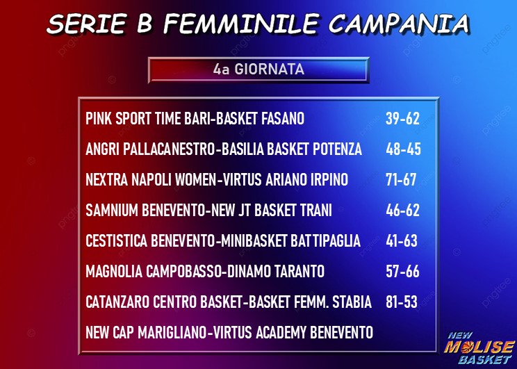 CAMPOBASSO: Grande 16, Padulo 4, Giuliani 5, Tateo 5, Carrarini 7; Felicita 10, Perini 4, Costato 6, Altavilla, Libardo, Giulivi. Ne: Ciancaglione. All.: Diotallevi.
