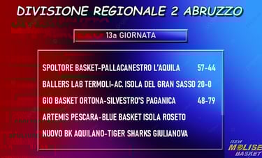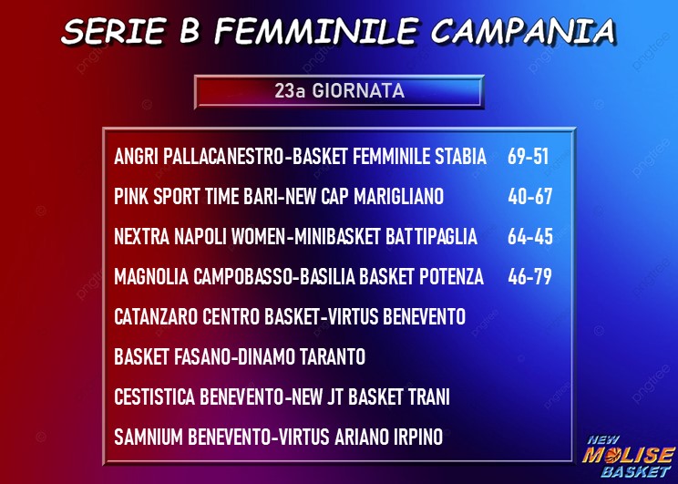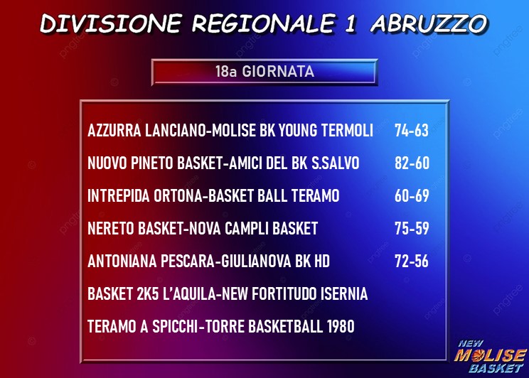 In B femminile battuta la Magnolia Campobasso; in DR1 sconfitta a testa altissima per la Molise Basket Young Termoli sul campo della capolista Lanciano, in DR2 la Ballers Lab Termoli avrà il 20-0 a causa della rinuncia dell'Academy Isola del Gran Sasso