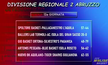 Vince (o - per essere più precisi - vincerà non appena avverrà l’omologazione da parte del giudice sportivo) a tavolino la Ballers Lab Termoli, la cui gara contro l’Academy Basket Isola del Gran Sasso non si è disputata a causa della rinuncia preventiva della formazione abruzzese. In un primo momento, la società appenninica aveva chiesto il rinvio, che i termolesi avevano accordato senza problemi, ma poi rendendosi conto che non sarebbero riusciti ad organizzare la trasferta in Molise in un giorno infrasettimanale, hanno comunicato la rinuncia. Il che a norma di regolamento comporterà l’assegnazione della vittoria col canonico 20-0 alla formazione termolese, che dunque conquista altri due punti in classifica e mantiene la vetta. Alle sue spalle resiste soltanto Paganica, che vince sul campo della Gio Basket Ortona, mentre Giulianova va ko su quello del Nuovo Basket Aquilano e viene raggiunta al terzo posto dalla Blue Basket Roseto, corsara a Pescara. Infine, torna alla vittoria anche Spoltore, che supera sul proprio parquet la Pallacanestro L’Aquila.