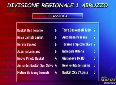 Divisione Regionale 1 Abruzzo 2025-26: Vince la Molise Basket Young Termoli, ko la New Fortitudo Isernia