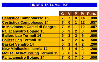 Terzo appuntamento mensile con risultati e classifiche dei tornei ai quali partecipano le formazioni giovanili molisane