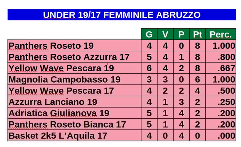 A fronte di questi risultati, Roseto Academy è campione regionale ed è ammessa alla fase interregionale insieme all'Azzurra Lanciano. Le altre squadre parteciperanno alla fase Coppa Abruzzo, la cui vincente sarà ammessa anch'essa alla fase interregionale.