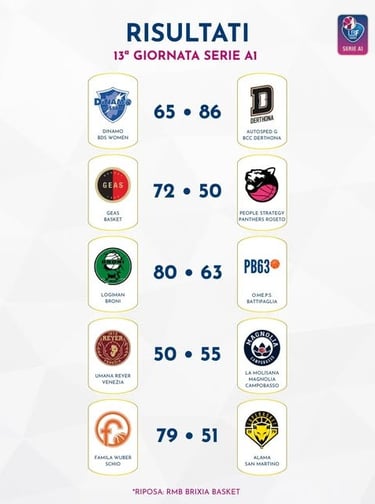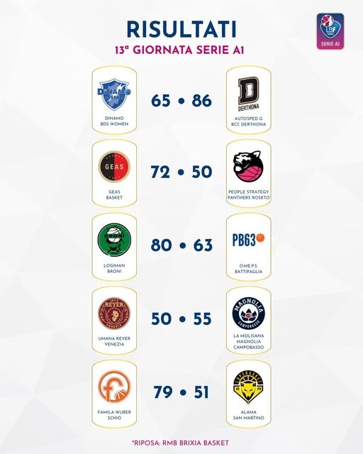 Con questa prestigiosa vittoria, la Magnolia consolida il terzo posto in classifica alle spalle del duo Schio-Venezia, con la capolista che fa suo senza particolari problemi il derby veneto contro SDan Martino di Lupari. E soprasttutto la Magnolia tiene a distanza Derthona, che conferma di essere nel suo momento di forma migliore dall'inizio della stagione andando a vincere a Sassari con la fuga decisiva nel quarto periodo, e Geas, che supera davanti al pubblico amico le Panthers Roseto, apparse sotto tono rispetto alle ultime prestazioni. Vince anche Broni contro Battipaglia ed agguanta Sassari con 10 punti in classifica. La zona playout al momento è occupata da San Martino, Brescia - che ha risposato - e Battipaglia.