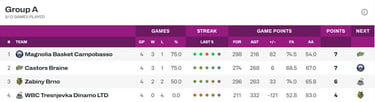 Coach Sabatelli tiene a Riposo Anna Makurat, anche in vista del big match di sabato in campionato contro Schio, ma fa entrare in campo Silvia Pastrello, all’esordio con la canotta della Magnolia e al rientro sul parquet dopo il grave infortunio subito lo scorso anno quando era a Sassari. Una serata tutto sommato “rilassante” per la squadra e i tifosi molisani, un buonissimo allenamento in vista della gara di sabato e una serata in cui arriva anche da Brno la notizia della vittoria esterna del Castors Braine contro la formazione ceca, il che aumenta le possibilità che la formazione di coach Sabatelli possa conquistare il primo posto nel gruppo A al termine della regular season perché, battendo le belghe mercoledì prossimo all’Arena, poi a Brno basterà vincere con qualsiasi risultato, senza la necessità di ribaltare il pesante passivo subito in casa dalla stessa Brno… ma questi sono discorsi che faremo fra un paio di settimane, quando avremo più chiara la situazione di classifica. Classifica che per il momento rimette in testa la Magnolia, che insieme al Castors Braine ha vinto tre partite su quattro ma ha il vantaggio nello scontro diretto con le belghe.