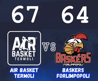 La partita è ora decisamente equilibrata, Forlimpopoli arriva fino a -1 ma viene ricacciata indietro dalle triple di Matera e Pierucci e Termoli sembra poter rimettere la situazione sugli stessi binari dei primi quindici minuti di gioco quando torna ad un vantaggio di 13 lunghezze (52-39), chiude la terza frazione sfiorando la doppia cifra di margine sul 54-45 e torna a +12 con la tripla di un ottimo Pierucci in apertura di quarto periodo. Poi, però, sale in cattedra il già citato Vico, che comincia a macinare canestro dopo canestro e mette i liberi del sorpasso per la sua squadra (61-62). Odigie risponde riportando i molisani in vantaggio, ma L. Brighi ridà il +1 ai suoi prima del finale concitato già descritto, nel quale Vico perde i due palloni decisivi ma Termoli è molto brava ad approfittarne e a tenere i nervi saldi.sugli ultimi attacchi dell’avversaria. Finisce 67-64, i molisani possono tirare un sospiro di sollievo, in tutti i sensi: per la partita e per la classifica.
