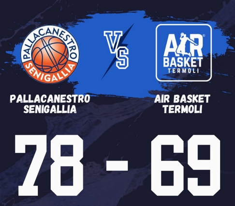 NOTE: Tiri liberi: Senigallia 17/27 (63%), Termoli 9/15 (60%). Tiri da due: Senigallia 23/41 (56%), Termoli 18/43 (42%). Tiri da tre: Senigallia 5/20 (25%), Termoli 8/31 (26%). Rimbalzi: Sernigallia 43 (Ciccoli Massi 12), Termoli 35 (Diarra 12). Assist: Senigallia 21 (Battisti 5), Termoli 14 (Pianegonda 8). Palle perse: Senigallia 16, Termoli 13. Palle recuperate: Senigallia 6, Termoli 7. Fallo tecnico a Cassano (Termoli). Fallo antisportivo a Pianegonda (Termoli).