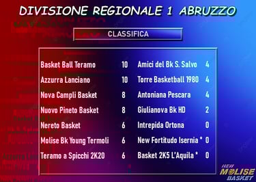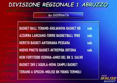 Divisione Regionale 1 Abruzzo 2025-26: Molise Basket Young a Teramo, New Fortitudo in casa con San Salvo