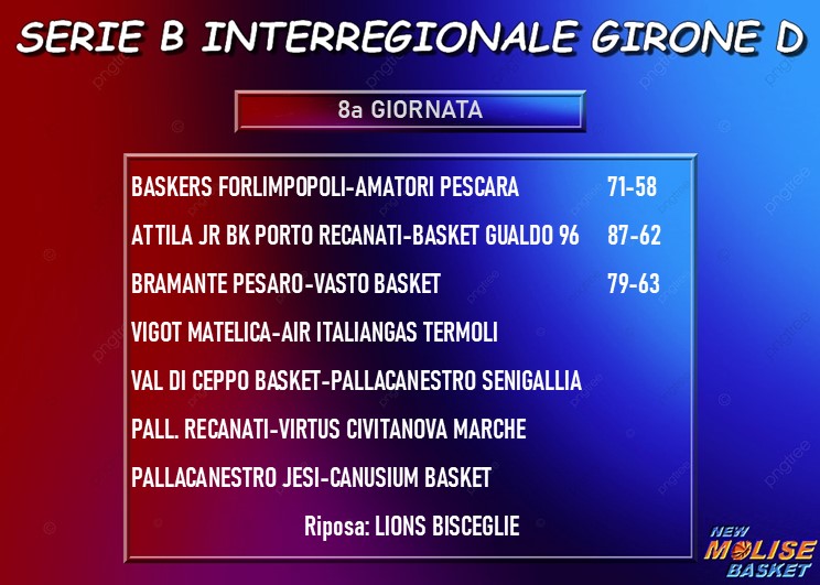in DR2, sconfitta interna di misura per la Ballers Lab Termoli. Oggi in campo tutte le altre molisane maschili, mercoledì la Magnolia in B femminile