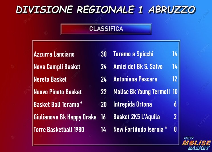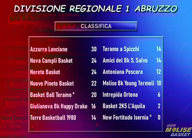 Divisione Regionale 1 Abruzzo2025-26: Termoli a L'Aquila,Isernia a Pescara