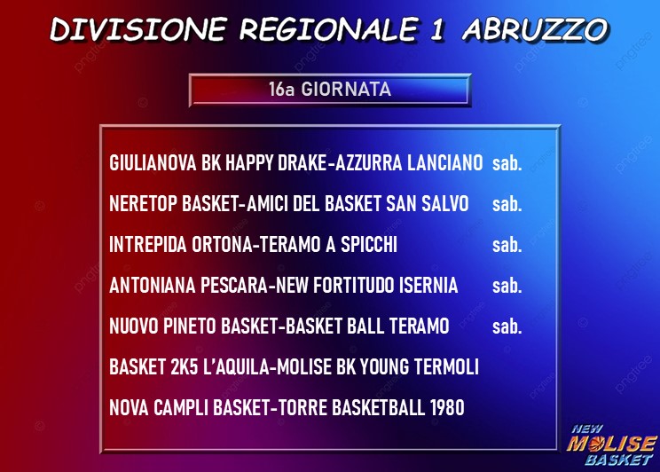 La capolista Lanciano, che ormai punta a vincere tutte le partite in questa stagione, è di scena sul campo del Giulianova Happy Drake con tutti i favori del pronostico, così come favorite sono le due seconde, Campli e Nereto, che affrontano, entrambe in casa, rispettivamente Torre de’ Passeri e San Salvo. Pineto-Basket Ball Teramo è la gara più interessante della giornata, chiude il quadro degli incontri in programma il match fra Ortona e Teramo a Spicchi.