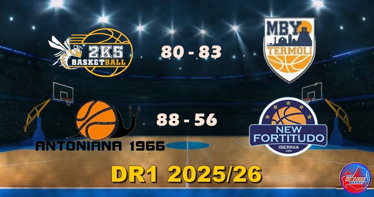 Una vittoria e una sconfitta per le due molisane di Divisione Regionale 1, con la Molise Basket Young Termoli che passa a L’Aquila e la New Fortitudo Isernia che è battuta sul campo dell’Antoniana Pescara. I termolesi vincono un match insidioso contro una squadra che cerca di approfittare al meglio dell’assenza di Sow, impegnato in serie B al Palasabetta con l’Italiangas. Tuttavia i molisani si battono bene e dopo un brutto primo quarto prendono bene in mano le redini dell’incontro nella seconda e nella terza frazione di gioco, resistendo al tentativo di rimonta avversario nell’ultimo quarto. Anche Isernia non comincia bene la sua partita pescarese ma resta abbiondantemente in partita fino all’intervallo lungo, recuperando nel secondo periodo gran parte dello svantaggio che accumula nel primo. Poi, però, nel terzo quarto Pescara piazza il break decisivo e conduce in porto la gara senza ulteriori sussulti.