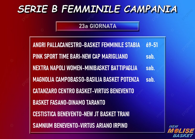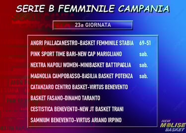Anche in questa ottava giornata di ritorno si è giocato un match di venerdì, match del quale vedete il punteggio finale nella prima immagine, mentre la classifica mostrata nella seconda NON è aggiornata col suddetto risultato. Fra le due prime in classifica, quella che ha l’impegno più difficile è senz’altro Catanzaro, che ospita la Virtus Benevento, mentre Marigliano gioca in trasferta sul campo della Pink Bari. Fasano-Taranto, derby pugliese che mette di fronte la terza e la sesta della graduatoria, è decisamente il match più interessante della giornata, per il resto tante sfide fra quintetti in zona playoff (o che puntano ad entrarvi) contro quintetti al di fuori dalla zona playoff, precisamente Napoli-Battipaglia, Cestistica Benevento-Trani e Samnium Benevento-Ariano Irpino.