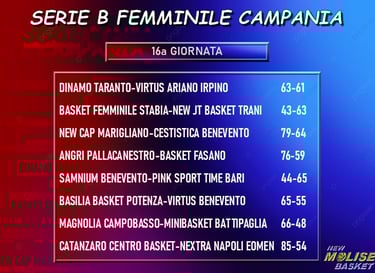 La Magnolia, così, si porta a quota 10 punti in classifica agguantando proprio Battipaglia ed è l'unica formazione nelle zona basse della graduatoria a fare punti insieme a Bari, che vince lo scontro diretto con la Samnium Benevento.. In testa, invece, Fasano perde ad Angri e viene raggiunta da Marigliano e Catanzaro, con la prima che supera la Cestistica Benevento e la seconda che fa suo con scarto sorprendentemente largo il big match della giornata contro la Napoli Women.. Trani non molla e passando a Castellammare di Stabia tiene il passo - insieme ad Angri - di campane e calabresi, cosa che non riesce alla Virtus Benevento, sconfitta a Potenza. Vittoria, infine, anche per Taranto su Ariano Irpino, successo che frutta alle joniche l'aggancio in classifica aNapoli Women e Virtus Benevento..