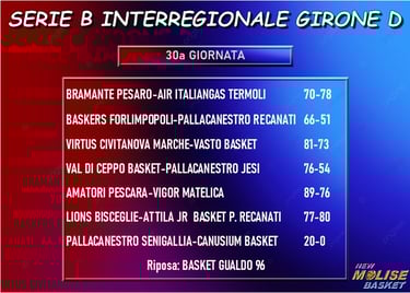 Difficile restare lontani dai luoghi comuni in una situazione come quella dell'Italiangas Termoli: vittoria agrodolce o dolce-amara, fate voi. Fatto sta che il successo dei molisani a Pesaro non basta per entrare nei playoff, vista l'analoga vittoria in contemporanea di Forlimpopoli su Recanati, che consente alla formazione romagnola di mantenere quel punticino di vantaggio in classifica che le consente di blindare l'ottava posizione e disputare la post season promozione a discapito del quintetto molisano, che dunque chiude qui la sua stagione, con una salvezza diretta che comunque - vista come si era messa ad un certo punto (leggi dopo la brutta sconfitta di Pescara) costituisce un risultato di notevole spessore. L'unico rammarico resta quello dei tre punti di penalizzazione, senza i quali Termoli oggi sarebbe nei playoff: non abbiamo idea degli esatti motivi per i quali questa penazlizzazione è arrivata, fa comunque parte del processo di crescita della società cercare di evitare quelle che a noi è stato detto essere delle "irregolarità amministrative" per le quali la sanzione è stata comminata.