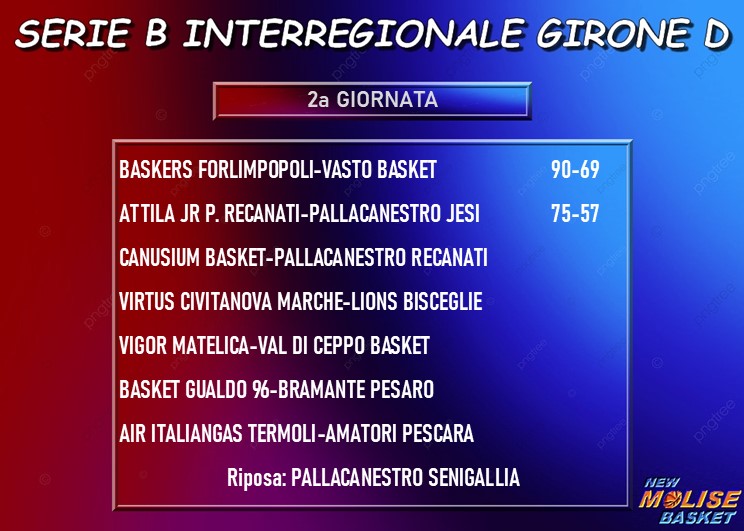 CAMPOBASSO: Felicita 5, Grande 14, Costato 2, Fatica 2, Carrarini 9; Giuliani 1, Tateo 6, Altavilla 11, Giulivi, Libardo, Perini 4, Ciancaglione. All. Diotallevi.