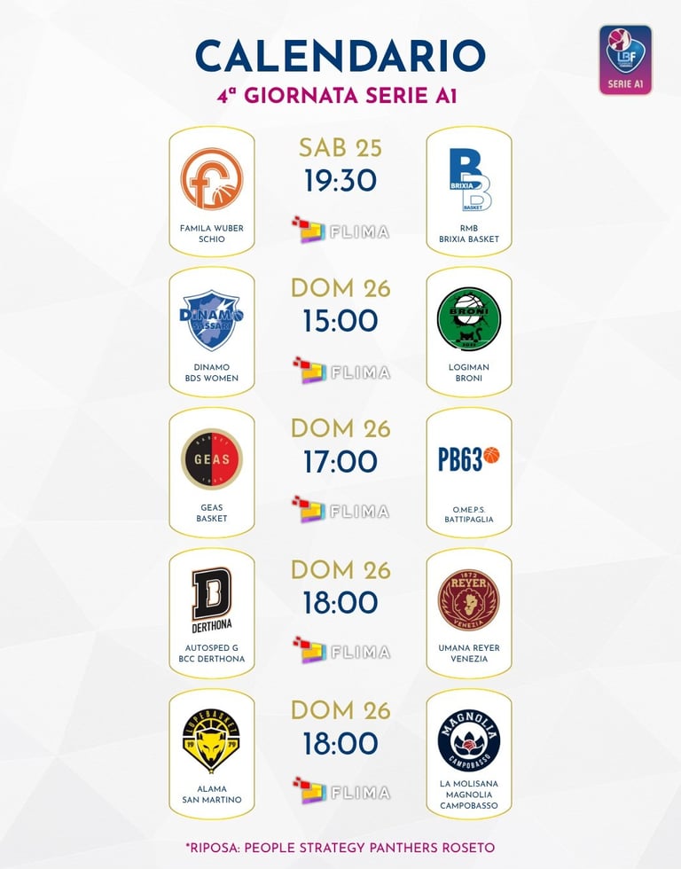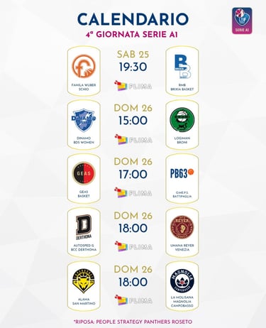 La quarta giornata comincia questa sera con la gara fra Schio e Brescia, che naturalmente vede largamente favorite le Orange. Tutte le altre partite sono in programma domani, con Derthona-Reyer Venezia che, insieme a San Martino-Magnolia, costituisce il piatto forte del fine settimana. Le piemontesi sono ancora alla ricerca del primo successo stagionale, la Reyer è reduce dalla prima sconfitta stagionale, subita in Eurolega: gli ingredienti per assistere ad una gara avvincente ci sono tutti, compreso il duello Kunaiyi-Cubaj, che dovrebbe essere una delle cose più interessanti da seguire nella partita. Sassari ha la possibilità di proseguire nel suo percorso da imbattuta ricevendo Broni e, infine, dopo la buona parentesi europea il Geas può riprendere anche in campionato la sua corsa dopo lo stop forzato della scorsa settimana ospitando Battipaglia. Riposa Roseto.