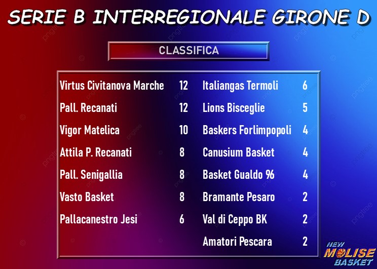 Serie B interregionale girone D 2025-26: L'Italiangas Termoli batte Porto Recanati dopo una maratona con due overtime
