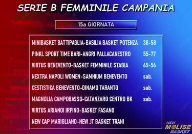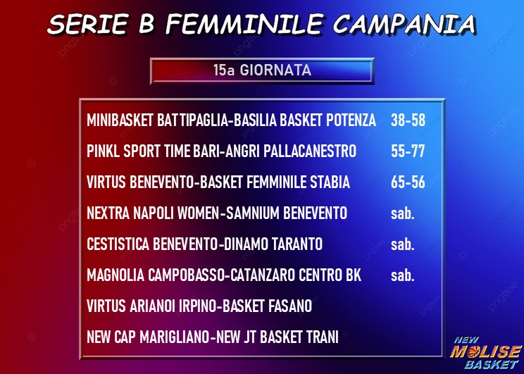 Come dicevamo nel post di una settimana fa, le partite dell’ultima di andata sono “spalmate” addirittura in quattro giorni. Con tre gare già disputate (i cui risultati potete vedere nelle immagini sotto), oltre al match fra Magnolia e Catanzaro restano da giocare alti quattro incontri, fra i quali il più interessante è senz’altro quello fra Marigliano e Trani, con la capolista che affronta un team pugliese in buona forma, quarto in classifica con ambizioni di salire ulteriormente nel ranking del campionato. Sulla carta meno difficile (ma comunque impegnativa) la gara riservata all’altra capolista, il Fasano, che va a far visita all’Ariano Irpino. Le due beneventane che devono ancora giocare, infine, sono svaforite contro le rispettive avversaria: Il Samnium ha un impegno improbo sul campo di una Napoli Women che cerca il riscatto dopo il pesante ko della scorsa settimana contro Fasano, la Cestistica riceve la Dinamo Taranto, che non è più la squadra che nelle giornate di avvio del campionato sembrava poter dire la sua per le primissime posizioni ma è comunque cliente difficile per il quintetto sannita.