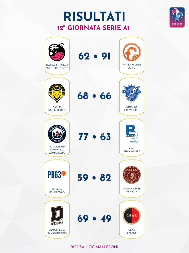 Con questo successo, la Magnolia consolida la terza posizione in classifica alle spalle del duo delle big, con Schio che passa a Roseto e Venezia che fa lo stesso a Battipaglia. Il big match fra Derthona e Geas va alla formazione di coach Cutugno che agguanta in classifica quella di coach Zanotti ribaltando la differenza canestri nel doppio confronto e riproponendo la sua candidatura per una delle prime quattro posizioni al termine della regular season. Ferma Broni per il turno di riposo e ferma anche Sassari, che perde a San Martino di Lupari, con le venete che conquistano due punti che sono ossigeno puro per la loro classifica ma restano terzultime davanti a Brescia e Battipaglia, che nella gara contro Venezia ha fatto esordire la nuova arrivata Ilyana Georgieva, in uscita da Faenza in serie A2.