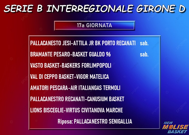 Dicevamo di Bisceglie: la “capolista virtuale” del campionato è impegnata in casa nel big match contro Civitanova Marche, decisamente la gara più importante di questa seconda giornata del girone di ritorno. Delle tre prime in classifica “reali”, invece, quella che ha il compito più difficile è senza dubbio Porto Recanati, che giocherà a Jesi, mentre le altre due - Recanati e Matelica - hanno impegni decisamente più abbordabili rispettivamente in casa contro Canosa e in trasferta con Val DI Ceppo, con entrambi i quintetti di bassa classifica che però ultimamente sono apparsi in leggera ripresa. Pesaro-Gualdo e Vasto-Forlimpopoli sono gli ultimi due match in programma, entrambi fra squadre che fanno parte del gruppone a quota 10 punti.