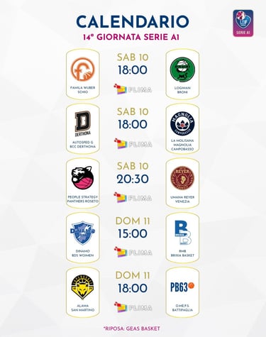 Quello fra Derthona e Magnolia è decisamente il big match della terza giornata di ritorno, giornata che ha in programma un'altra partita piuttosto importante, questa volta per le zone basse della classifica. San Martino di Lupari, infatti, ospita una Battipaglia che nelle due settimane di riposo ha trovato il tempo di rinforzarsi con l’ingaggio della playmaker canadese Shayeann Day-Wilson, la quale dovrebbe fare il suo esordio proprio nel match in terra veneta. Novità anche a Schio, dove è stata ripresa Kim Mestdagh fino al termine della stagione, con le orange che in questo quattordicesimo turno giocano in casa contro Broni. Si prospetta interessante las gara fra Sassari e Brescia e infine - the last but not the least - la Reyer Venezia è impegnata in una trasferta insidiosa come quella di Roseto, nella quale cercherà di uscire dal momento no della sua stagione culminato con la sconfitta casalinga contro la Magnolia e con l’eliminazione dalla semifinale di Coppa Italia. Riposa Sesto San Giovanni.