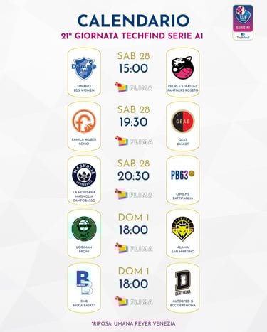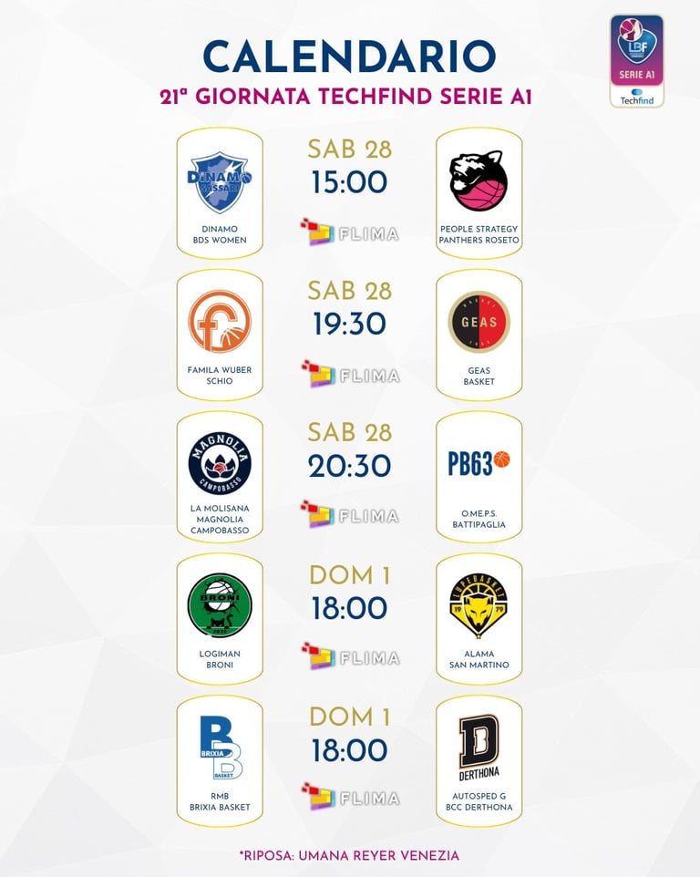 Si gioca una ventunesima giornata in cui tutte le attenzioni sono rivolte alla lotta per le posizioni di classifica che vanno dalla sesta alla nona, perché Venezia osserva il turno di riposo, Schio utilizzerà il match contro Sesto San Giovanni come allenamento per gara3 del play in di Eurolega e Derthona ha tutti i favori del pronostico nel match sul parquet di Brescia. Sassari-Roseto e Broni-San Martino sono gare sportivamente piuttosto “drammatiche”, perché chi perde rischia seriamente di rimanere fuori dai playoff. Si parte con le abruzzesi a -2 in classifica rispetto alle altre tre, con Broni che può fare affidamento sul 2-0 contro Sassari e con San Martino e la stessa Sassari che giocheranno la loro ultima gara di regular season, in quanto le sarde riposeranno nell’ultimo turno e le Lupe hanno già giocato (e vinto) la loro partita contro Venezia. Potete leggere tutto quanto può accadere in questo post, situato in altra parte del sito.