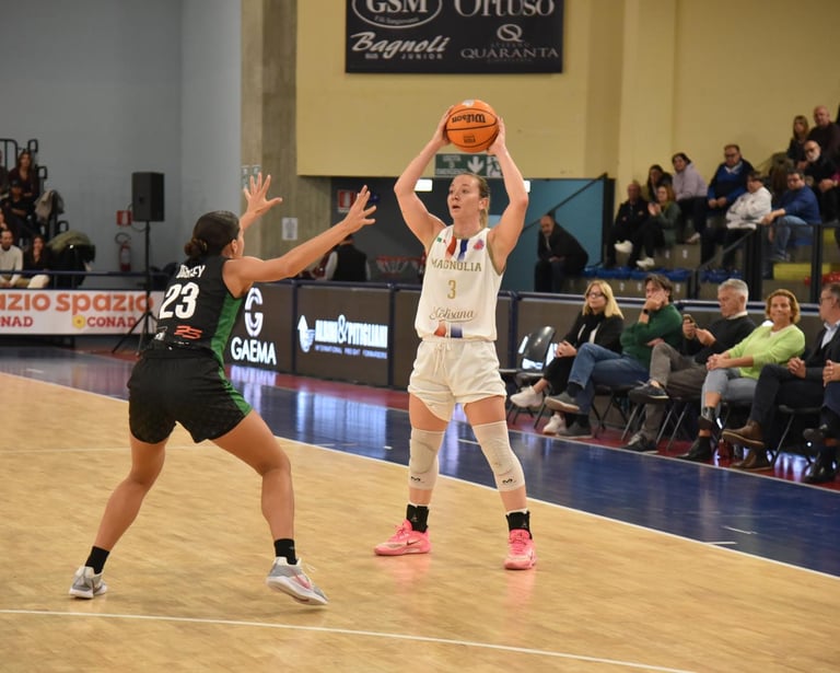 Difesa completamente in balia delle avversarie, che soprattutto dopo l'intervallo lungo trovano costantemente la tripla aperta sul perimetro e la mettono con continuità disarmante (10/21 dopo il ventesimo minuto), attacco totalmente fuori ritmo, con palla che a volte circola troppo, con giocatrici relativamente libere che regolarmente "passano" il tiro per provare il penetra e scarica, a volte non circola affatto - palla ferma con continui palleggi e tiro forzato - ed altre volte ancora che non comincia nemmeno a circolare, con passaggi mal consigliati che finiscono fra le mani delle avversarie o fuori dal campo. E, inoltre, quando la Magnolia arriva a tirare da sotto, la palla finisce spesso e volentieri fuori dal canestro dopo aver beffardamente ballonzolato per due o tre volte sul ferro... per riassumere nella maniera più sintetica possibile, alle campobassane non entra niente e alle ceche entra qualsiasi cosa, anche tiri da nove metri sulla sirena o palle buttate per aria con la mano dell'avversaria in faccia.