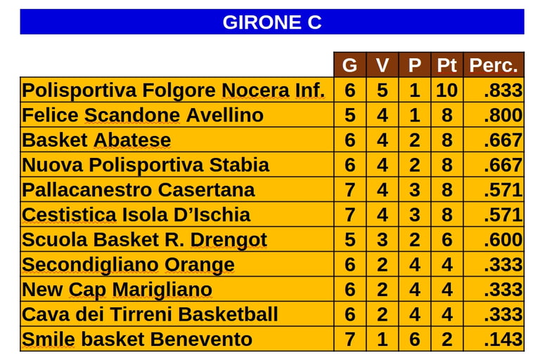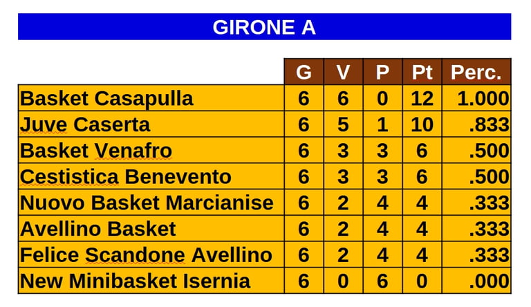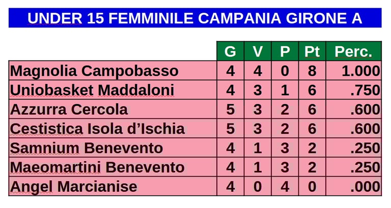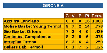Le classifiche di tutti i campionati a cui partecipano le squadre molisane