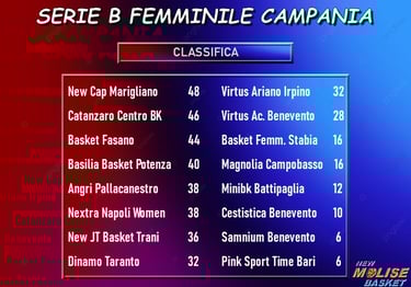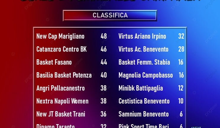 La Magnolia Campobasso vince il recupero contro la Virtus Benevento col punteggio di 59-38 e fa un passo avanti in classifica, agganciano Castellammare di Stabia a quota 16 punti. La squadra di coach Diotallevi ha ora qualche possibilità in più di conquistare la salvezza diretta, che tuttavia resta difficile. Nell'altro recupero in programma, la Pink Sport Time Bari ha vinto 64-56 a Battipaglia. Nell'immagine in alto vedete la classifica aggiornata.